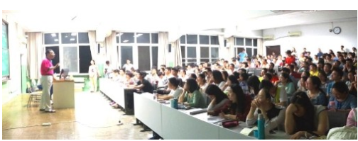 图为丁小平先生应中国人民大学数学研究会邀请于2016年5月11日晚7时—10时在中国人民大学做题为《现行微积分原理的系列错误》的学术报告。